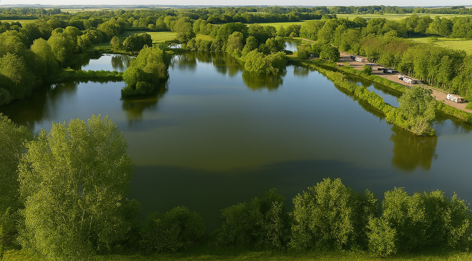 Designed as a specimen Lake with depths to 12ft with good average depths of 6ft to 8ft. The lake has a single offset island which allows for more open water fishing.